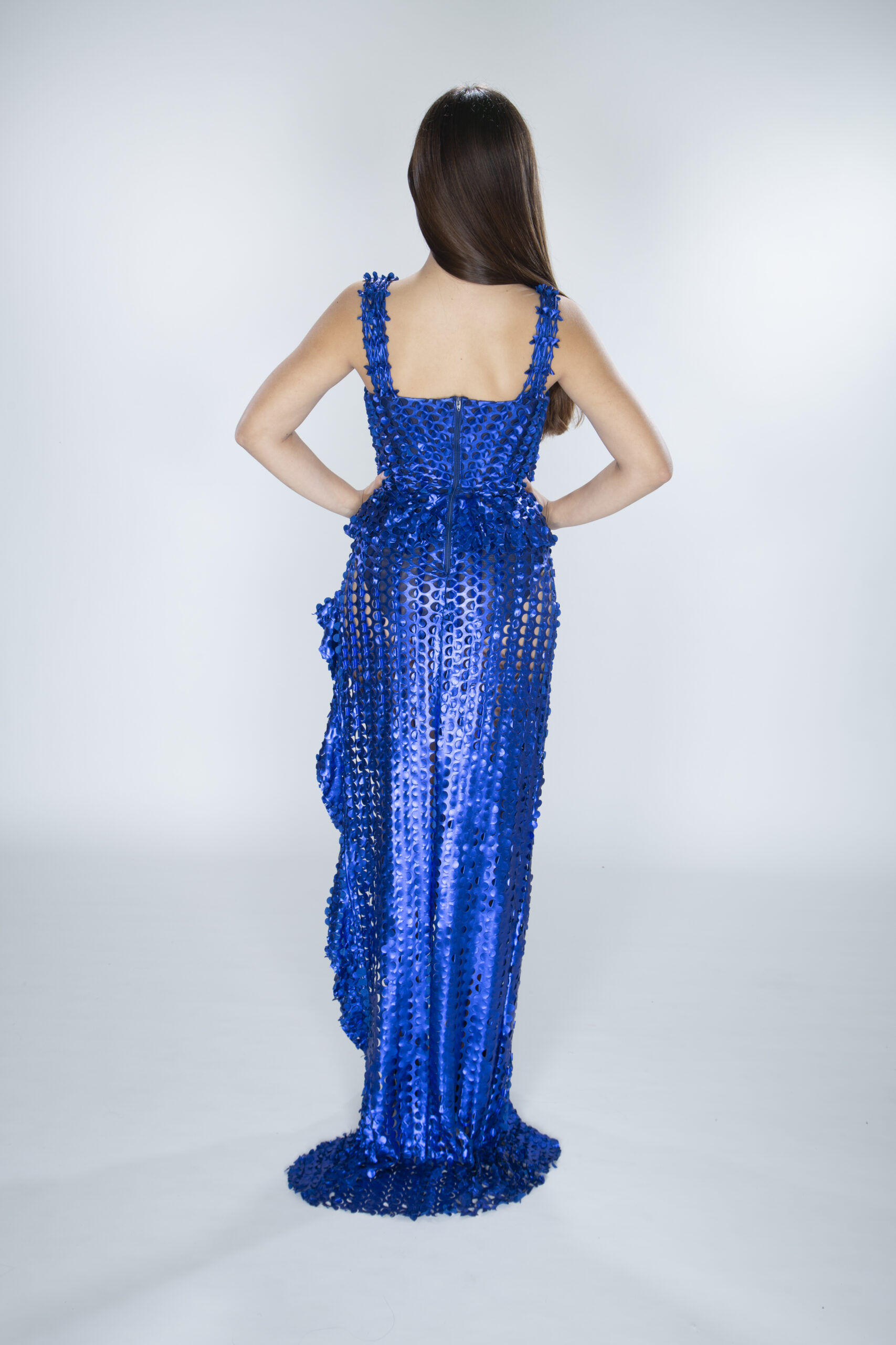 Floor Sample. Unique, scaly blue dress.
