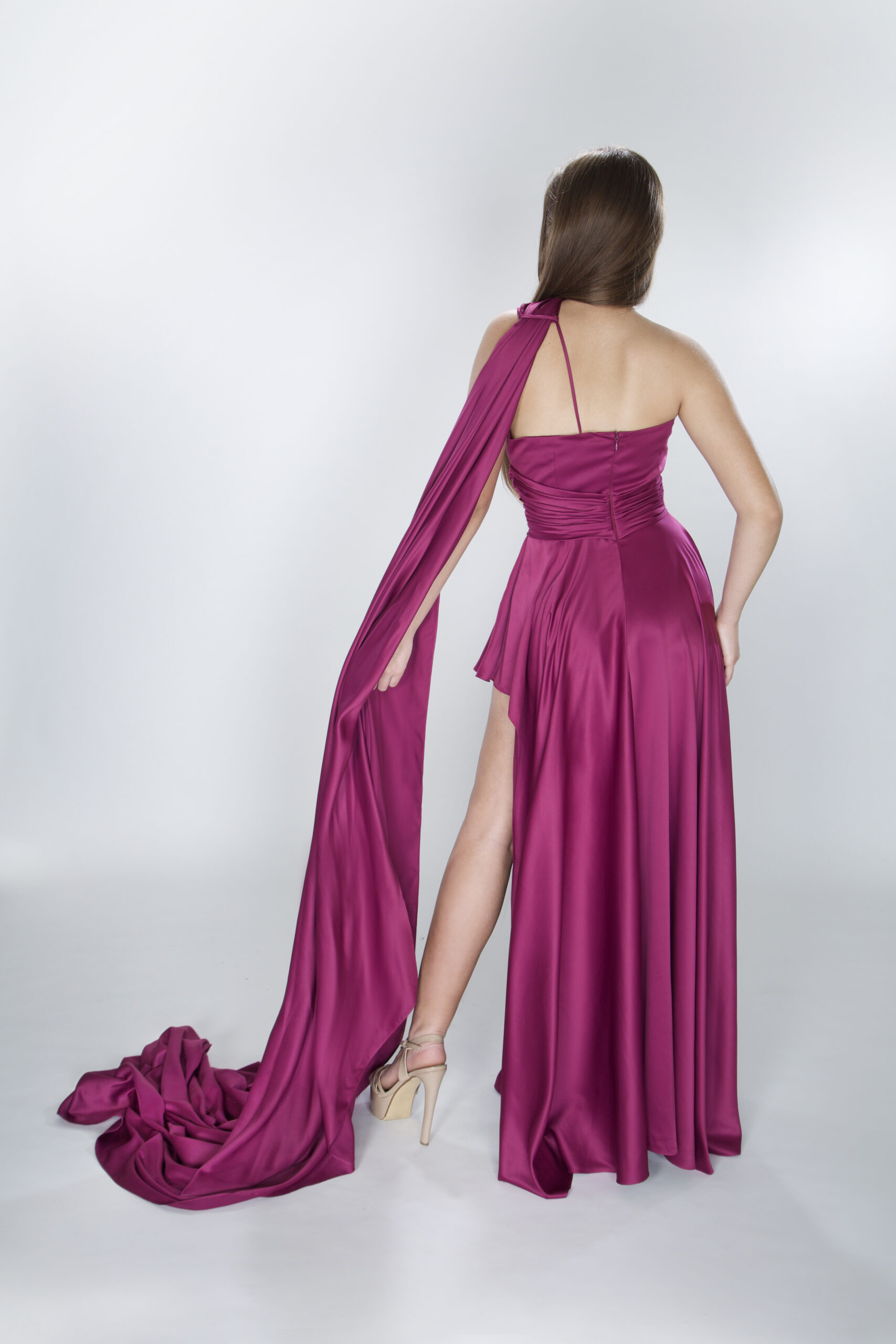 Floor Sample. Beautiful plum dress that drapes over you.